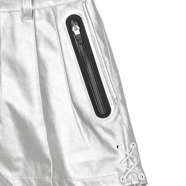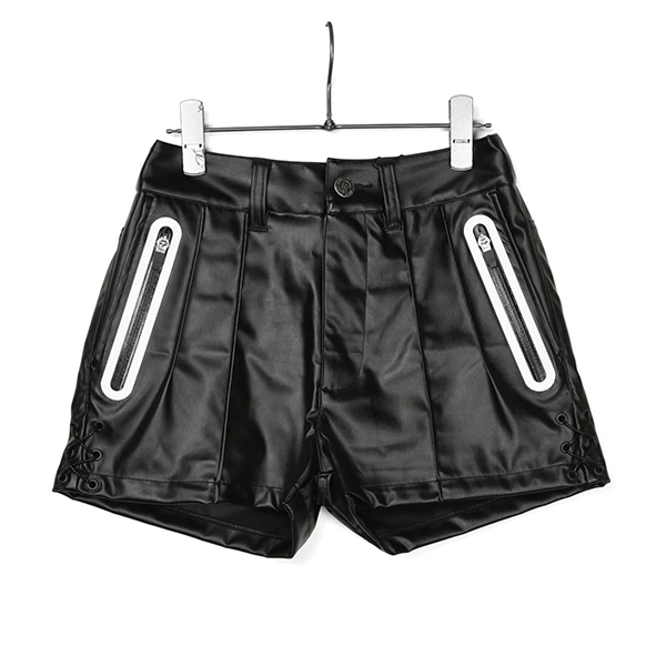 ボディーにフェイクレザーを使用したハイウェストシルエットのショートパンツです。