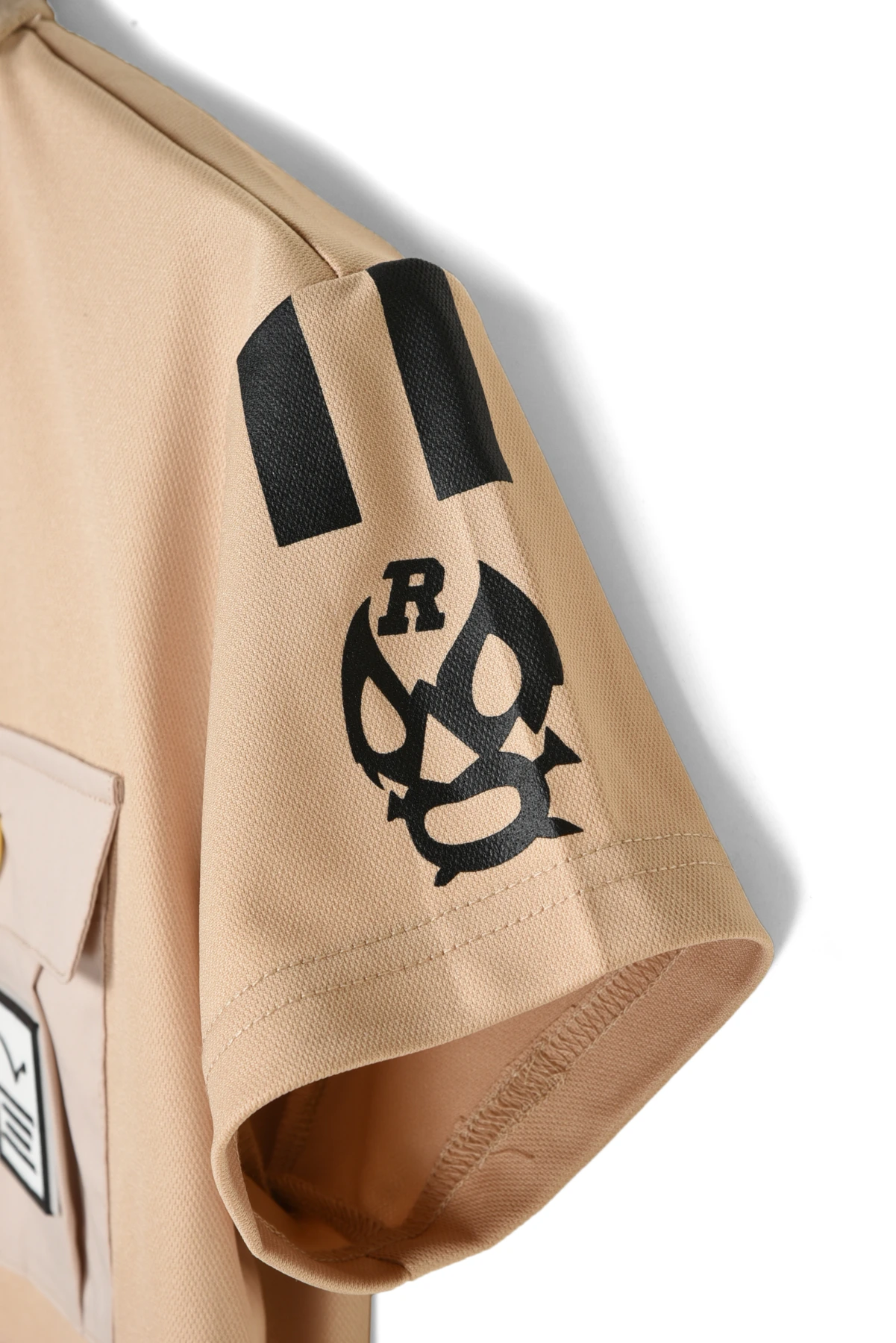 サファリルックをイメージした半袖ポロ。