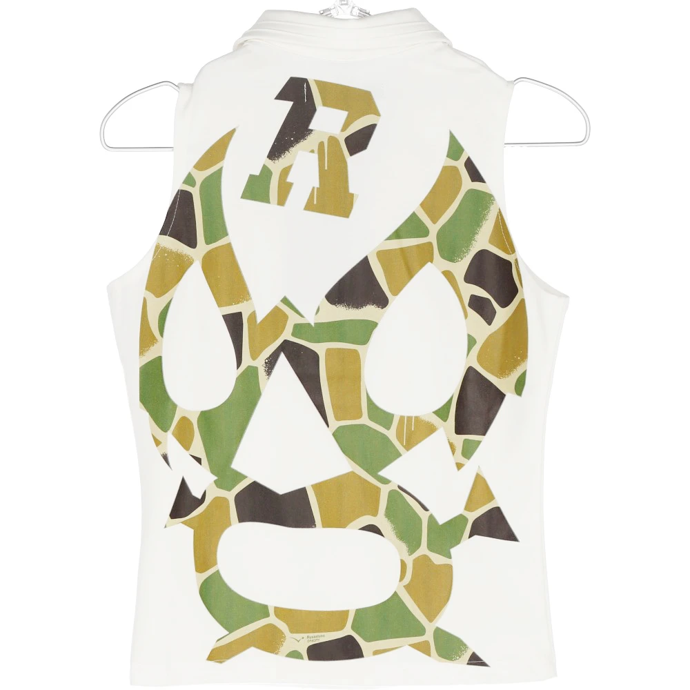 ビッグルチャをバックにプリントしたノースリーブポロ。