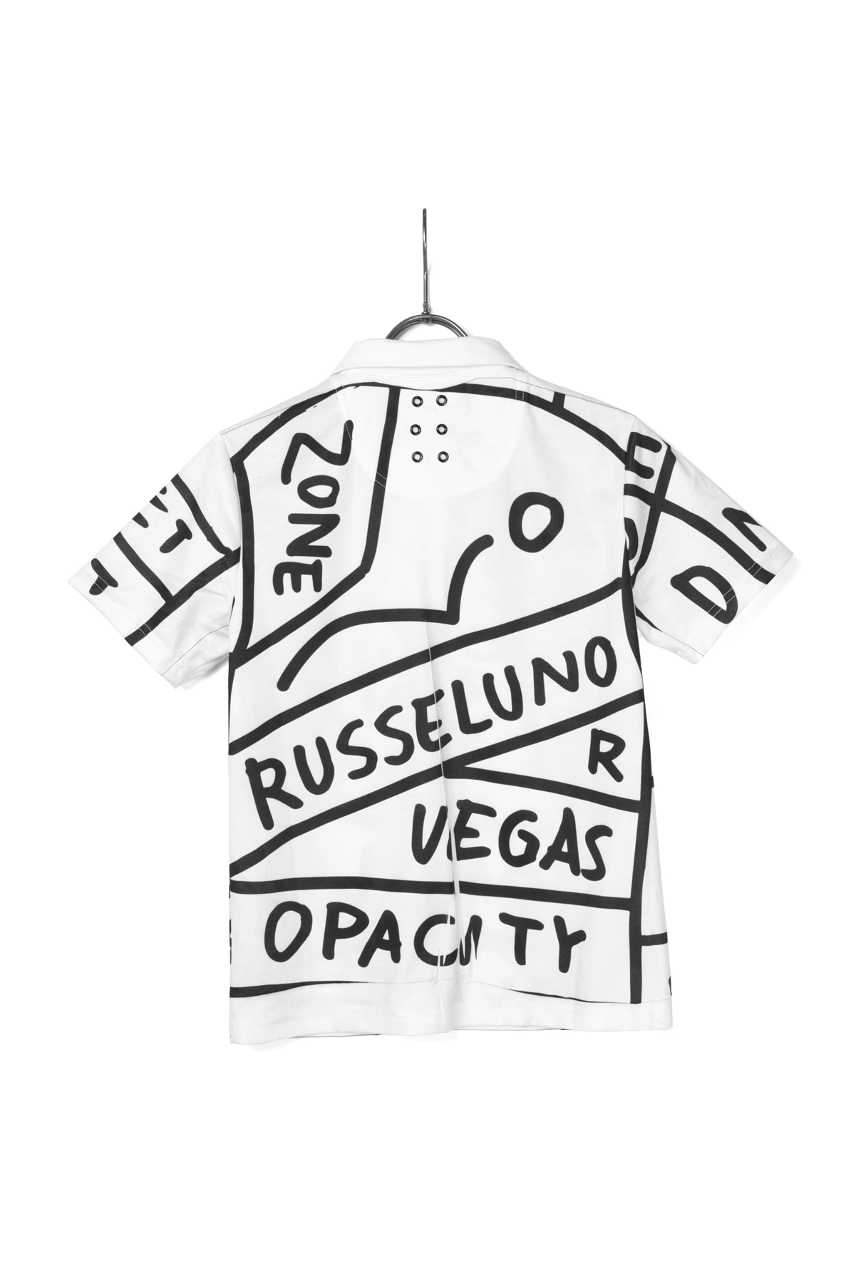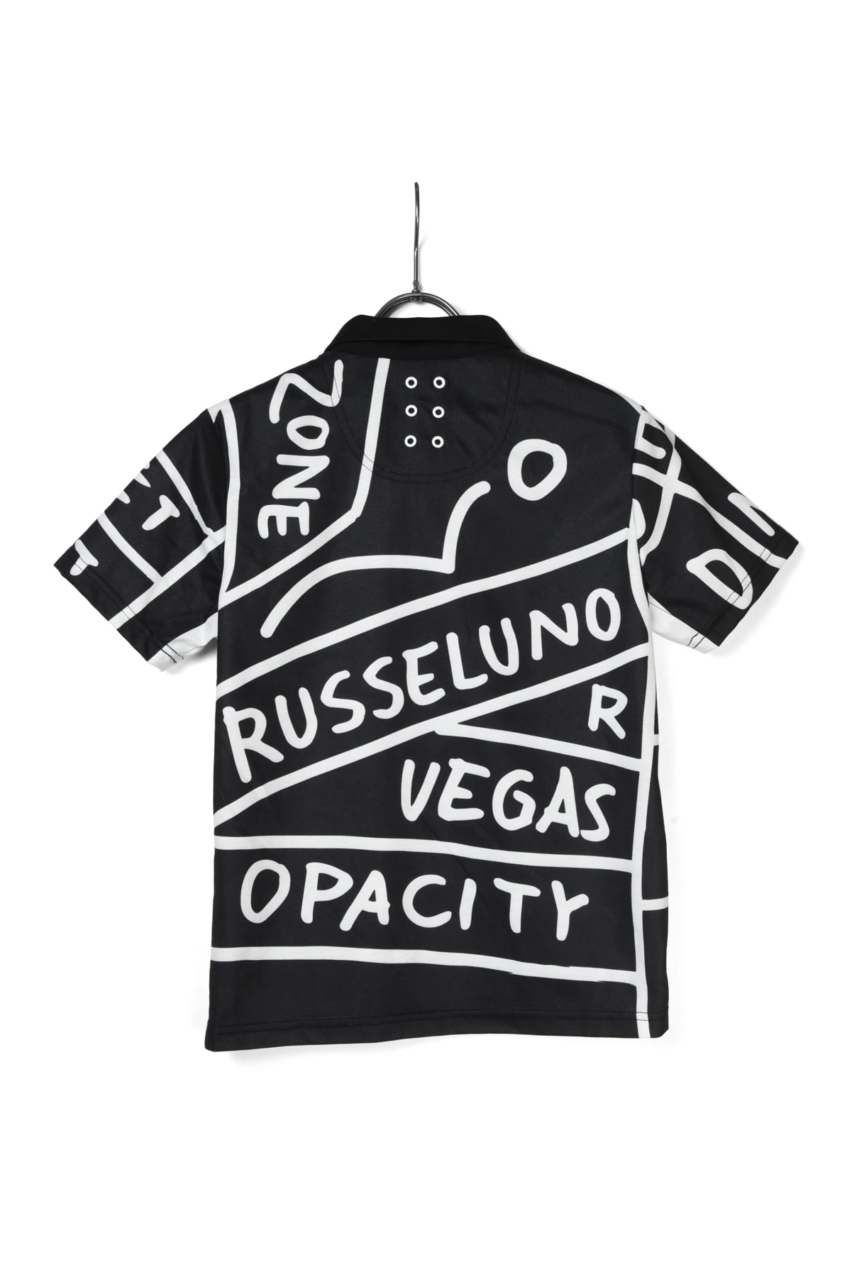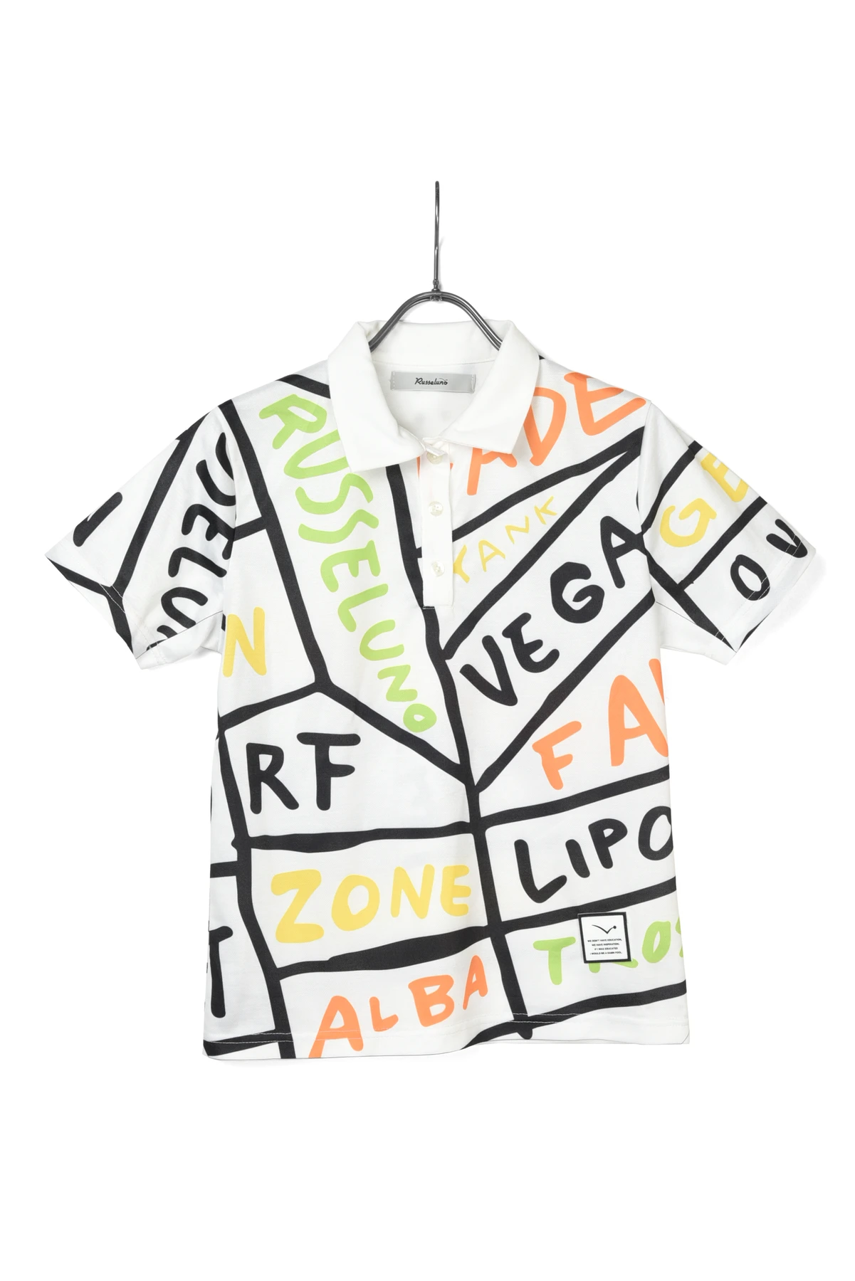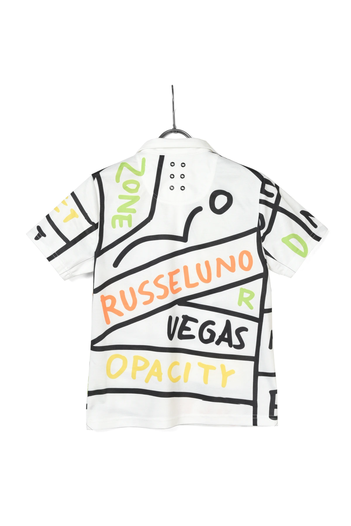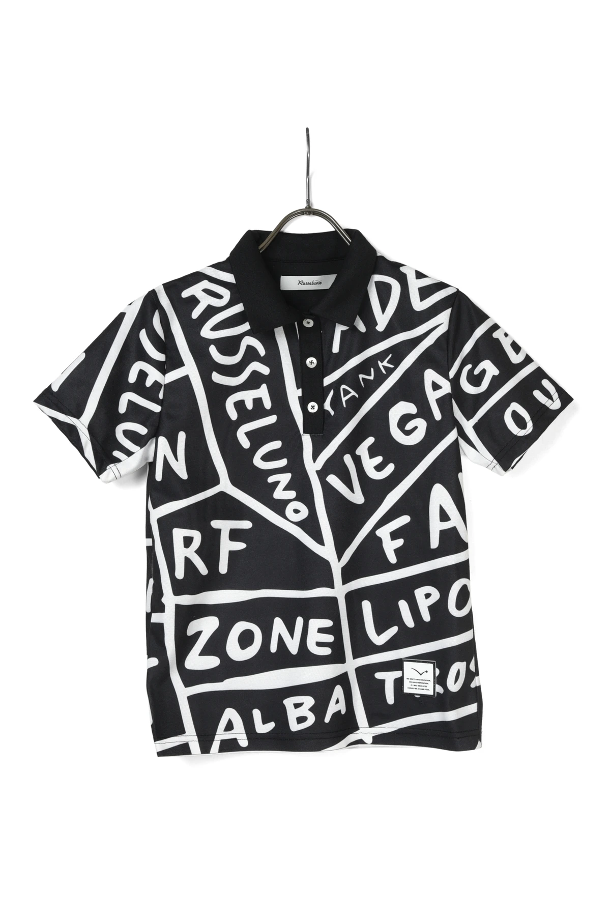 大胆な総柄パターングラフィックをプリントしたポロシャツです。