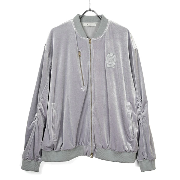 袖に入れたシャーリングや、リブ襟、シルエットをBOMBER ジャケットのようなスタイルで仕上げています。