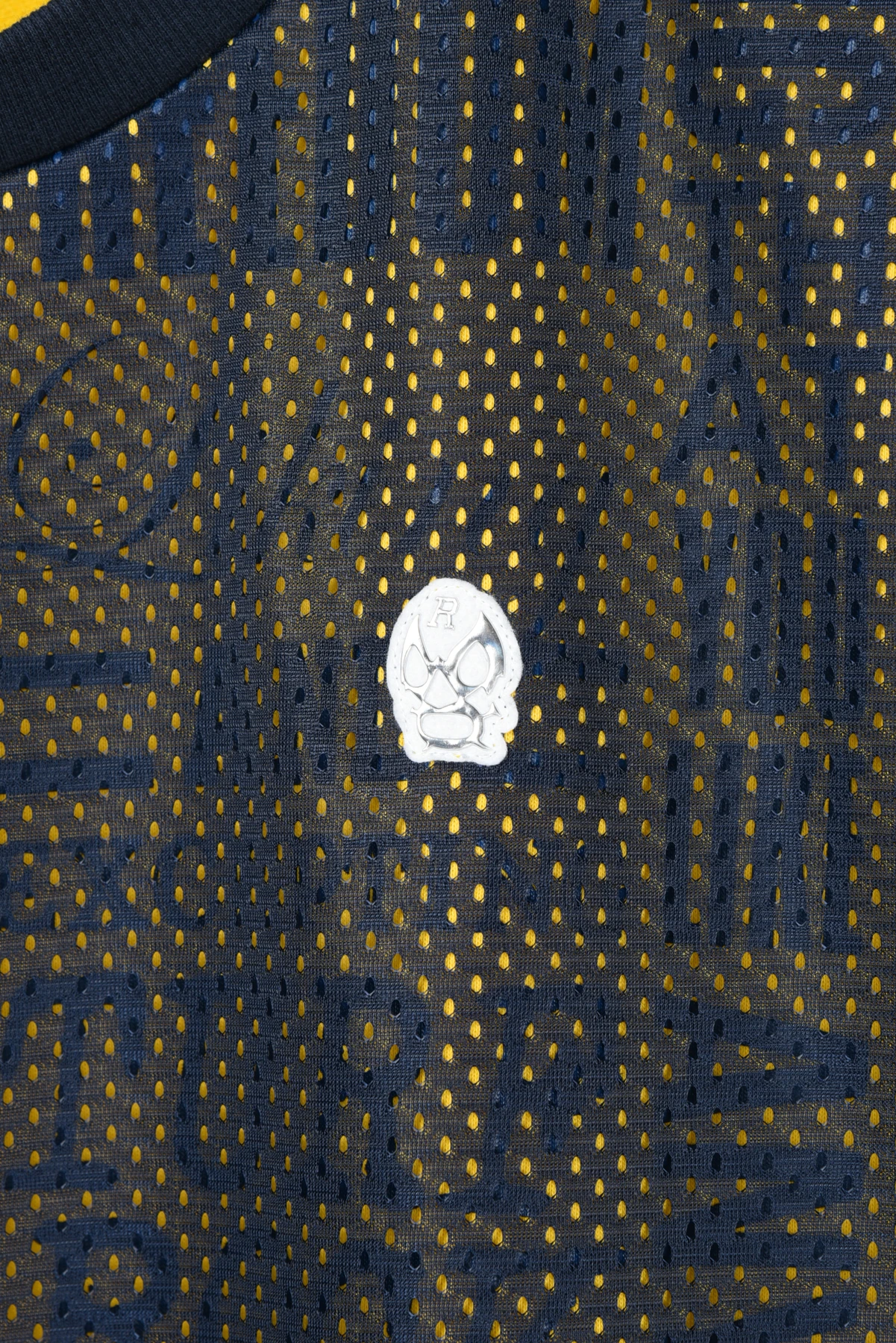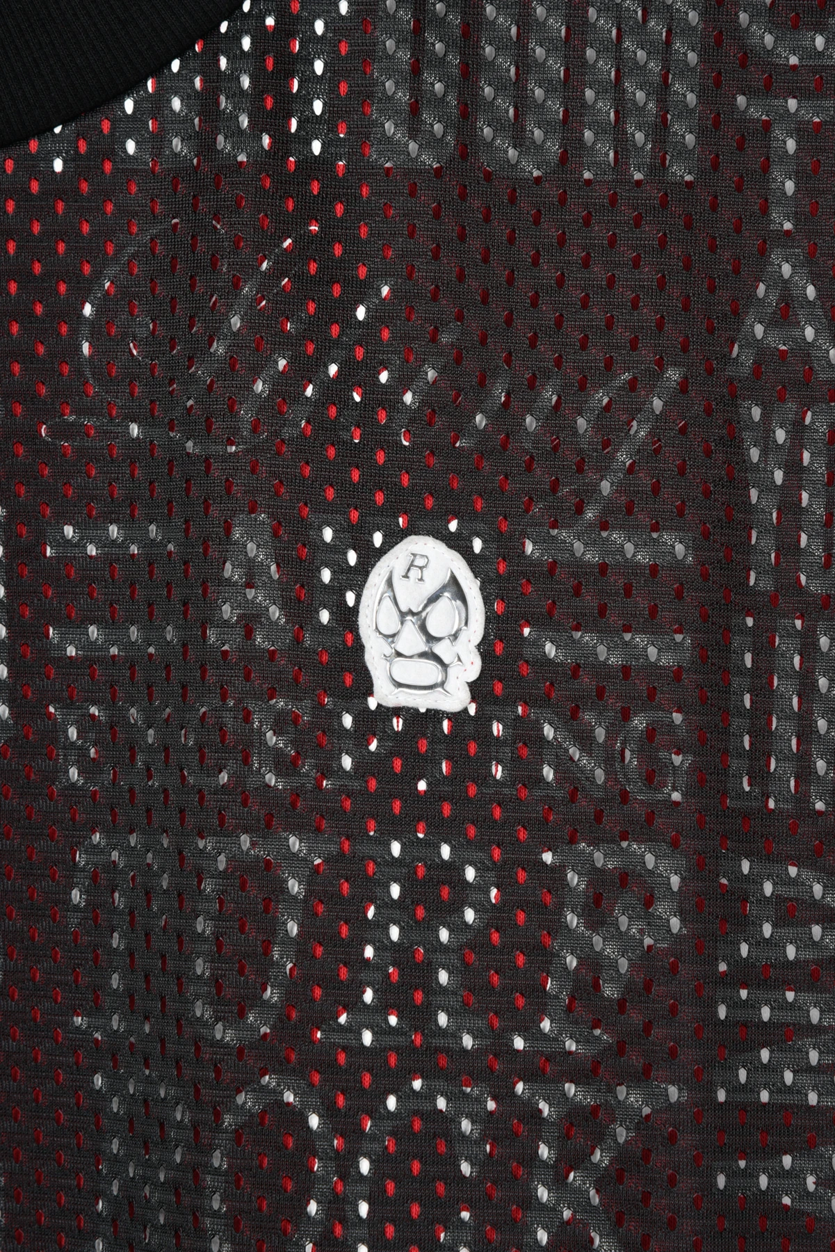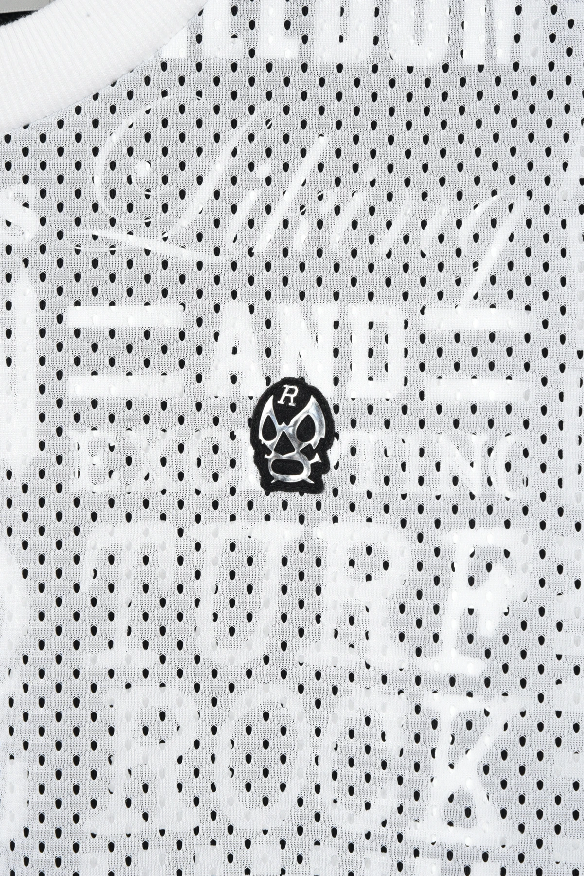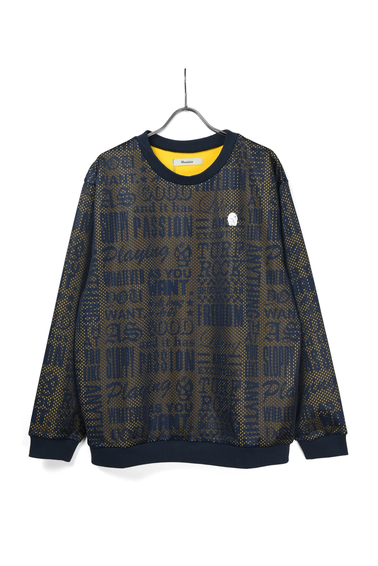総柄プリントの入った裏毛スウェット生地と、メッシュ生地をレイヤードさせたクルーネックスウェットです。