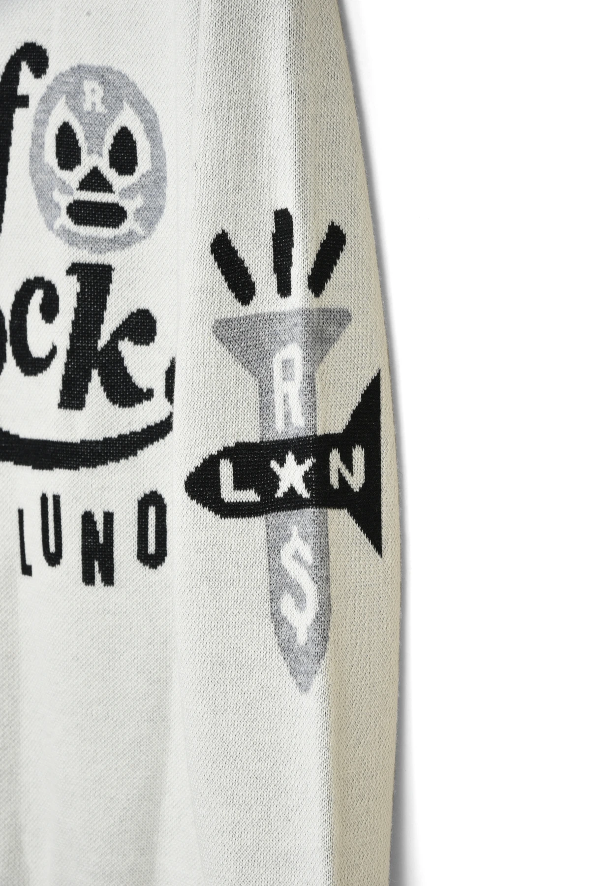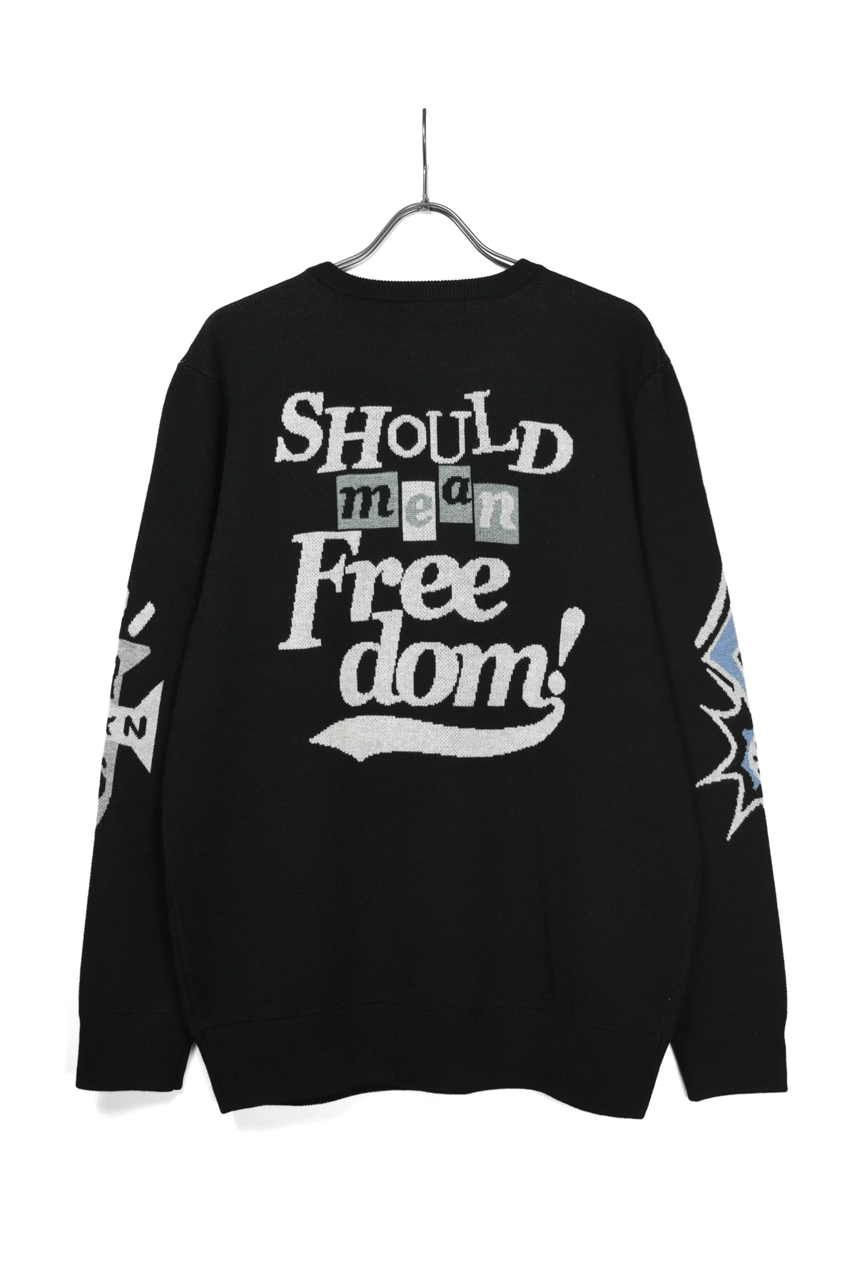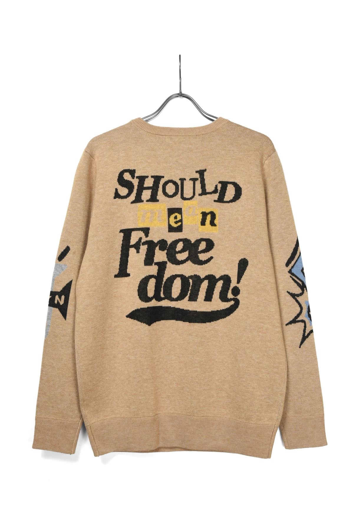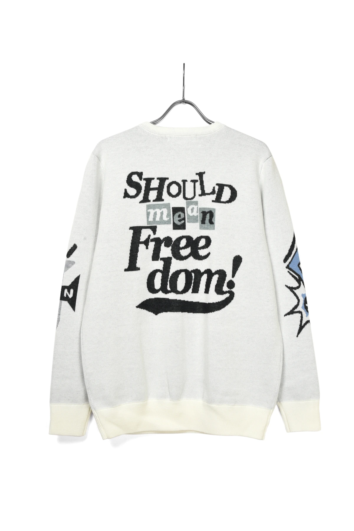 ジャガード編みでポップなデザインを大胆にデザインしたニットセーターです。