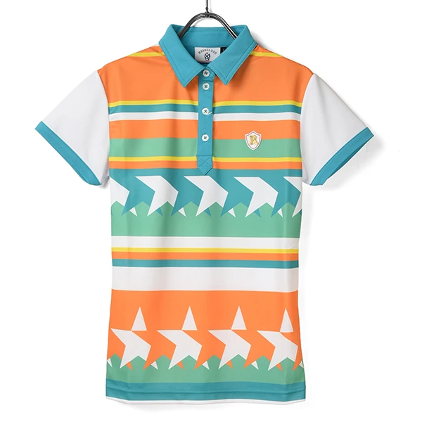 スターパターンを落とし込んだポップなボーダーパターンをプリントしたポロシャツです。